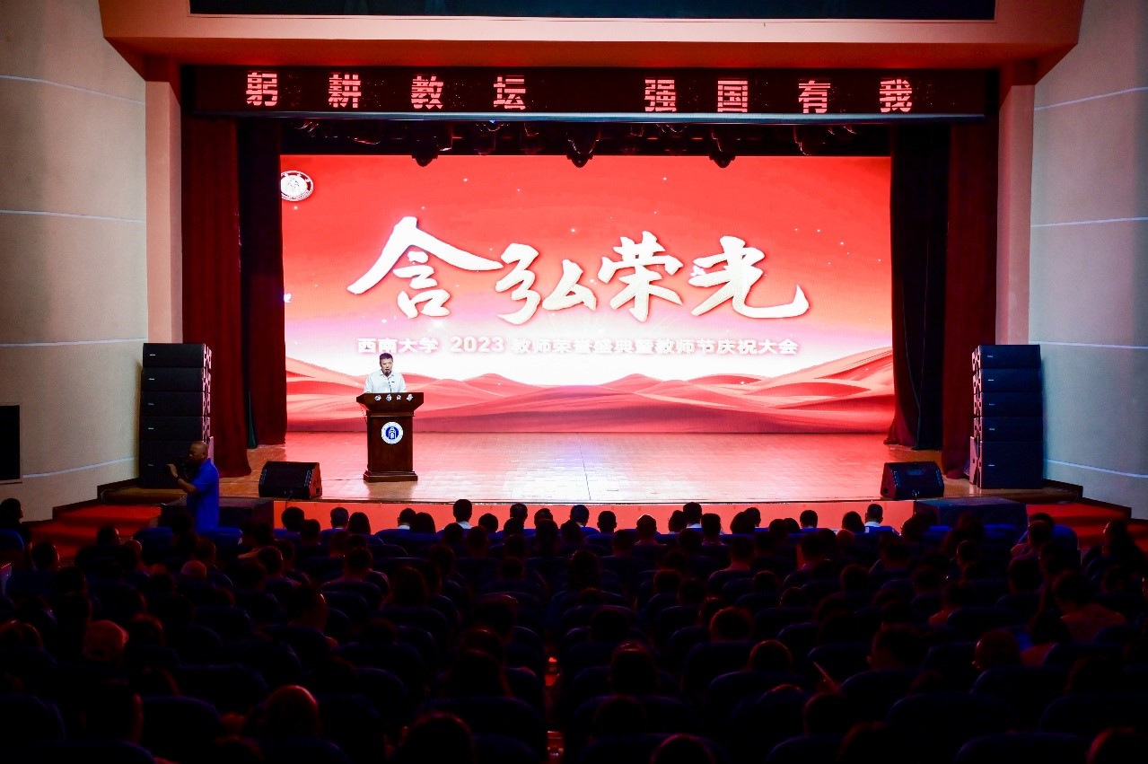 9月8日,学校在光大礼堂举行“含弘荣光”——Beat365中文官方网站2023教师荣誉盛典暨教师节庆祝大会。学校领导、各单位负责人,2022—2023学年度从教30年教职工、退休教职工、国家级和省部级荣誉称号获得者、新晋国家级人才、新聘含弘人才岗教师、新进教师,以及教师和学生代表参加了庆祝大会。
