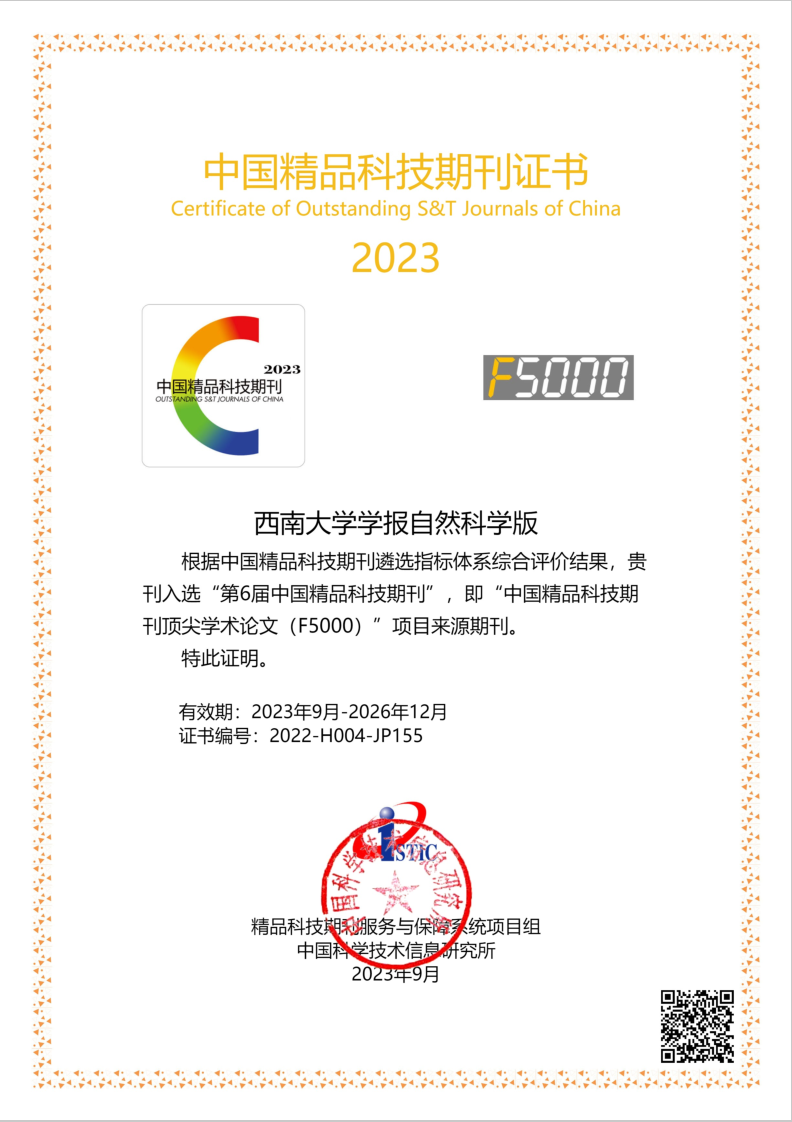 为进一步提升优秀学术期刊质量和影响力,带动我国科技期刊整体水平进步,中国科学技术信息研究所于2005年研制并推出“中国精品科技期刊”评价体系,自2008年启动首届开始,每三年遴选一次,主要从入选“中国科技核心期刊”的自然科学领域期刊中产生。2023年度推出第六届“中国精品科技期刊”327种,包括 300 种以中文出版的中国精品科技期刊和 27 种以英文出版的中国国际化精品科技期刊。《Beat365中文官方网站学报(自然科学版)》再次入选。