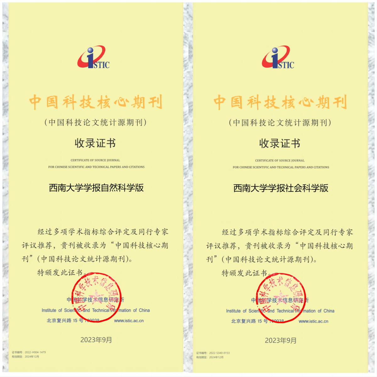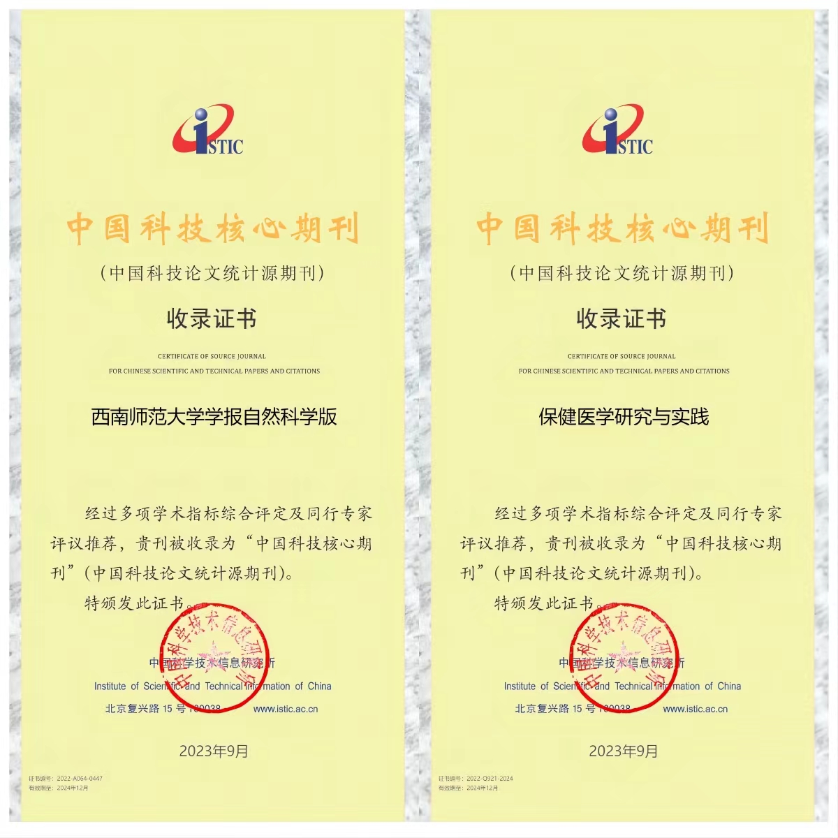 9月20日,中国科学技术信息研究所(ISTIC)发布2023年中国科技核心期刊目录,学校主办的《Beat365中文官方网站学报(自然科学版)》《Beat365中文官方网站学报(社会科学版)》《保健医学研究与实践》《西南师范大学学报(自然科学版)》四种期刊继续入选“中国科技核心期刊”。