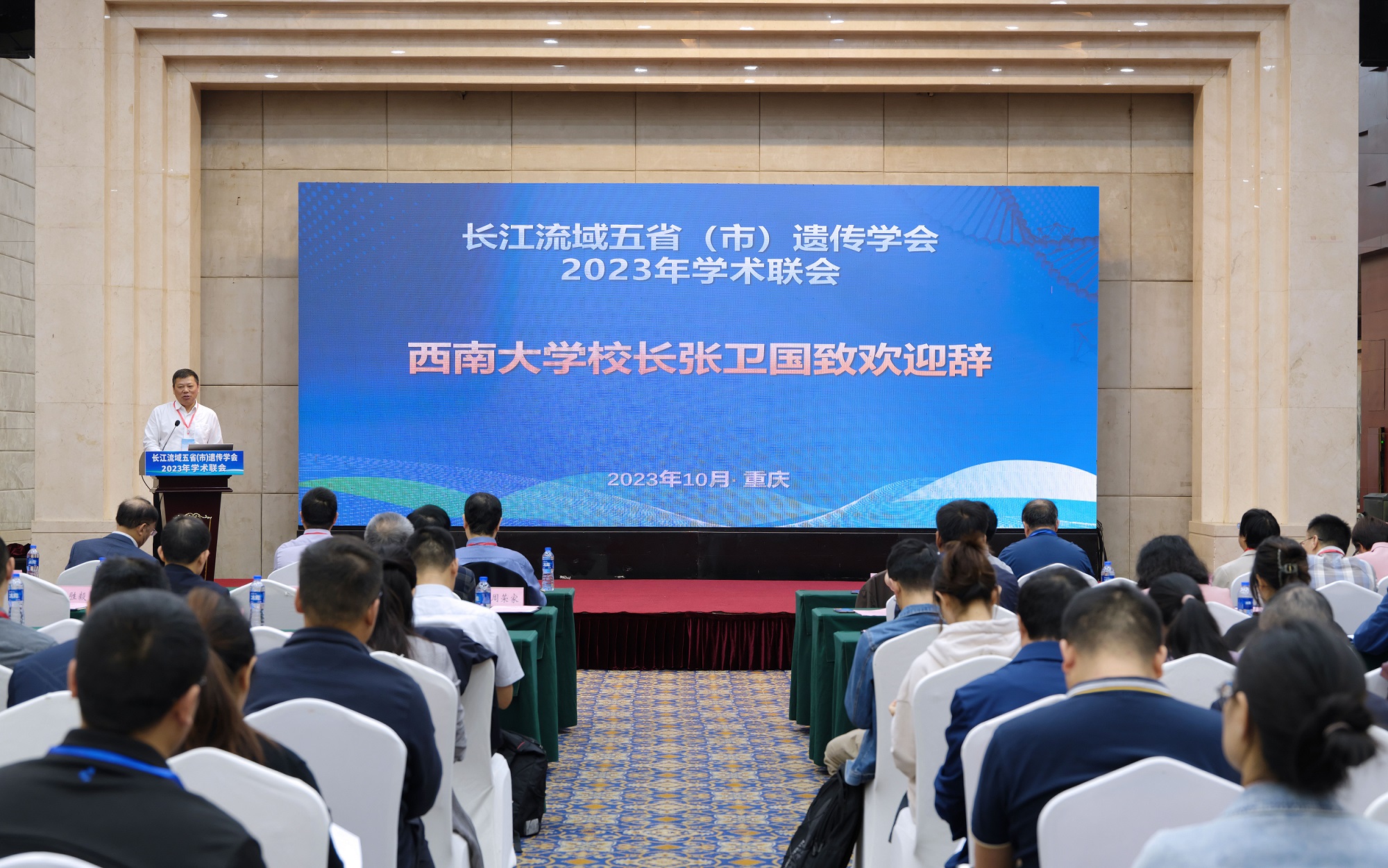 由重庆市遗传学会、安徽省遗传学会、湖北省遗传学会、湖南省遗传学会、江西省遗传学会共同主办的长江流域五省(市)遗传学会 2023 年学术联会于10月11-13日在重庆北碚召开。第十四届全国政协常委、湖南省政协副主席、南华大学校长张灼华出席开幕式。Beat365中文官方网站校长张卫国、重庆市科协二级巡视员牛杰、中国遗传学会理事长薛勇彪先后在开幕式上致辞。来自五省(市)部分高校、科研院所、医院等单位的近300名遗传学科研教学人员和研究生参加本次会议。