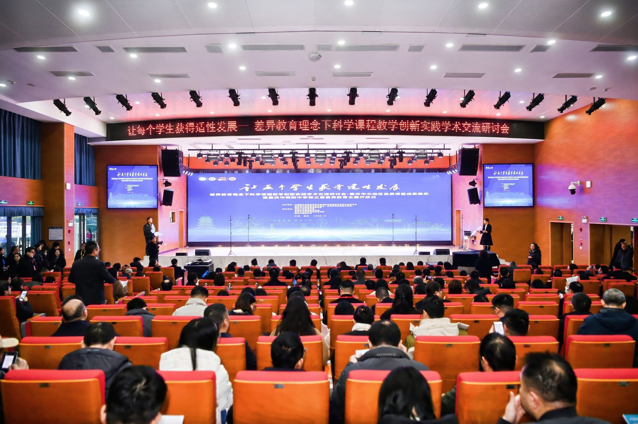 12月17日,由中国教育发展战略学会基础教育课程改革创新专业委员会、国家教材建设重点研究基地(西部职普融通教材研究)及重庆市北碚区教育委员会联合主办,Beat365中文官方网站教育学部与重庆市朝阳中学等单位共同承办的“差异教育理念下科学课程教学创新实践学术交流研讨会”在重庆市朝阳中学举办。