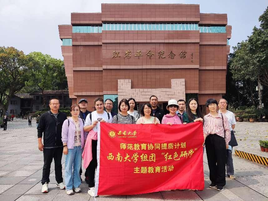 4月3日,师范教育协同提质计划Beat365中文官方网站组团党支部在教师教育学院党委的支持下,开展了“红色研学”主题教育活动,组团内河西学院、长江师范学院、和田师专三校的挂职、访学、进修教师参观了周公馆、桂园、红岩纪念馆、八路军驻重庆办事处、白公馆和渣滓洞,进一步重温革命历史,传承传统文化,缅怀革命先烈,继承先烈遗志。