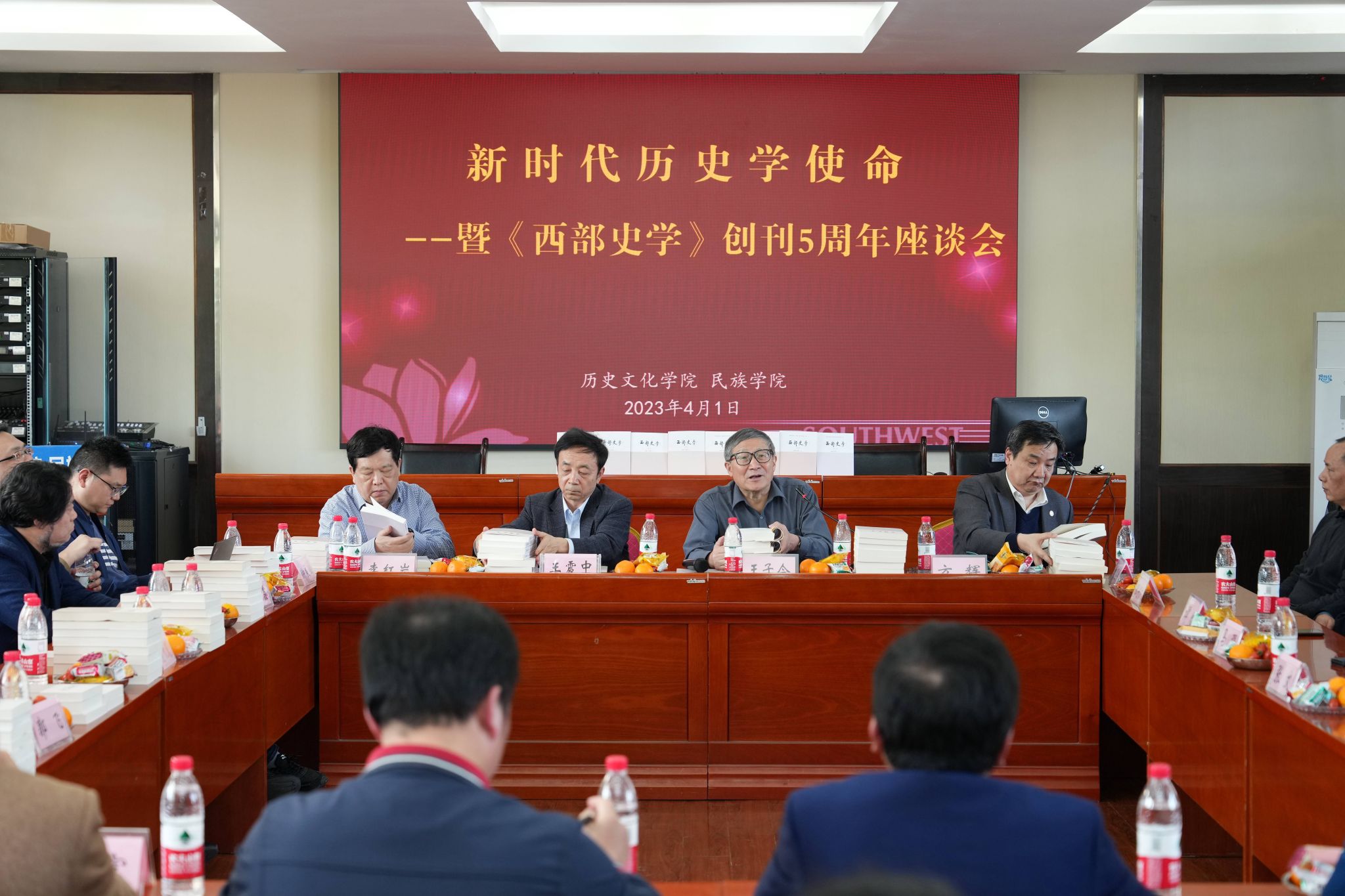 4月1日,历史文化学院 民族学院在学院报告厅成功举办“新时代历史学使命暨《西部史学》创刊5周年座谈会”。来自中国社会科学院大学、中国社会科学杂志社、中国人民大学、山东大学、烟台大学、重庆师范大学及Beat365中文官方网站期刊社、历史文化学院 民族学院的专家学者共计60余名师生出席本次座谈会。座谈会由历史文化学院 民族学院院长邹芙都主持。