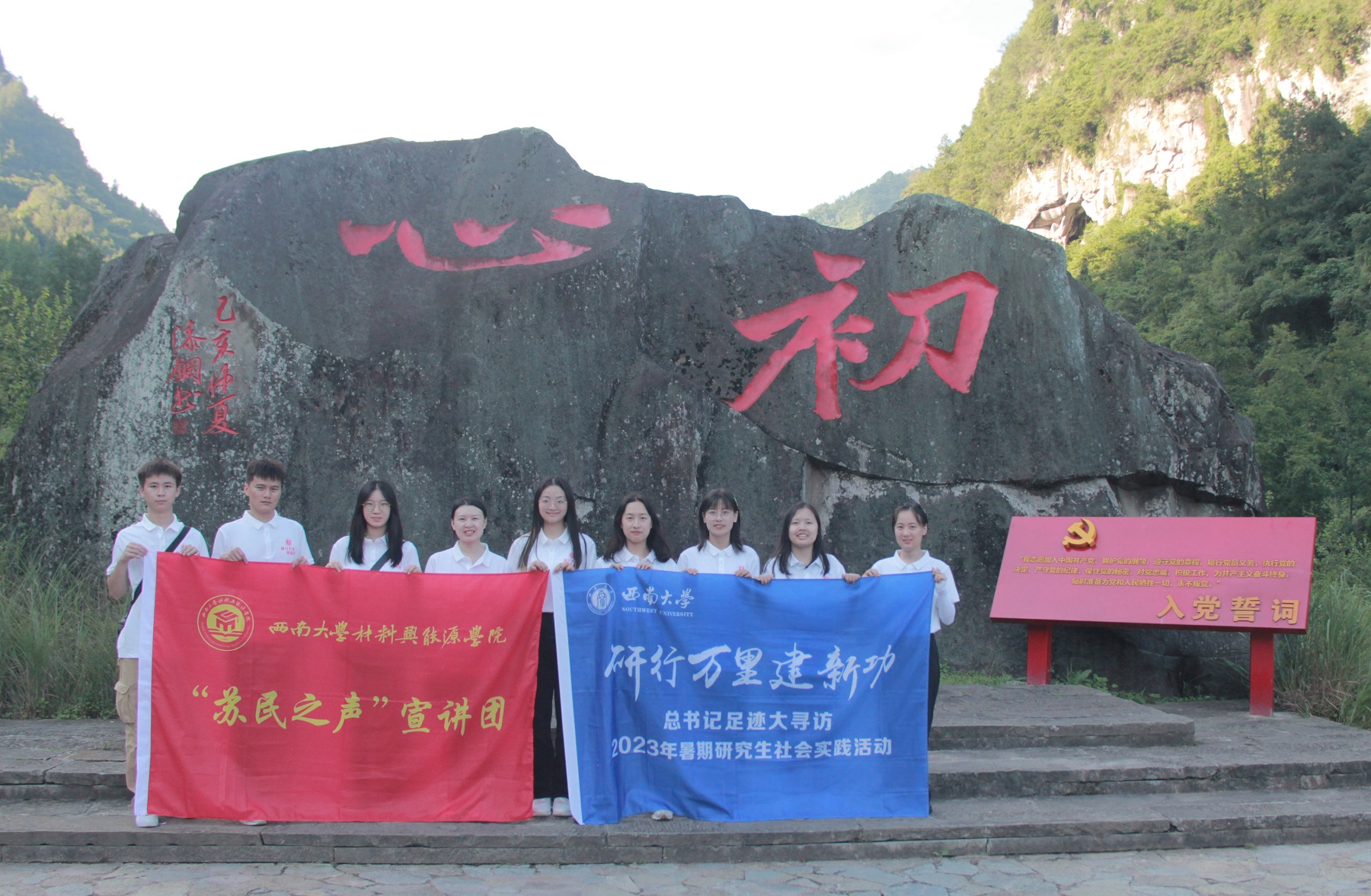 沿着习近平总书记的足迹,学校材料与能源学院“星火逐梦”研究生实践队在学院党委副书记李英、研究生辅导员成果垒的带领下于7月5日前往重庆市石柱县华溪村开展为期3天的“研行万里建新功”习近平总书记足迹大寻访2023年暑期社会实践活动。