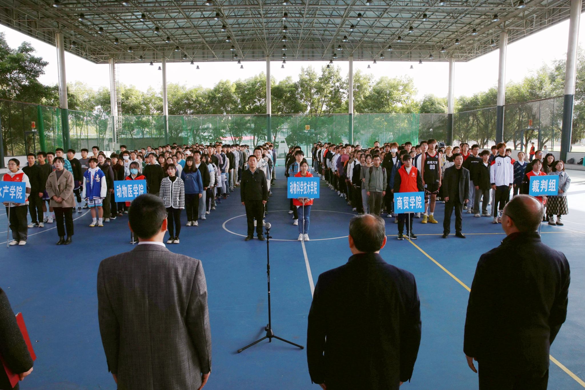 11月17日14:30,由Beat365中文官方网站体育运动委员会、Beat365中文官方网站荣昌校区党工委、管委会主办,Beat365中文官方网站荣昌校区学生工作办公室承办的Beat365中文官方网站荣昌校区第十九届“团建杯”球类联赛在荣昌校区风雨球场开幕。荣昌校区党工委书记周国安,荣昌校区党工委副书记、纪工委书记穆奎,荣昌校区综合办公室主任杨德生,在荣各学院党委副书记、团委书记及全体运动员、裁判员和在荣学院学生代表等参加开幕式,学校党委学生工作部(处)副部(处)长、荣昌校区学生工作办公室主任罗艳芬主持开幕式。