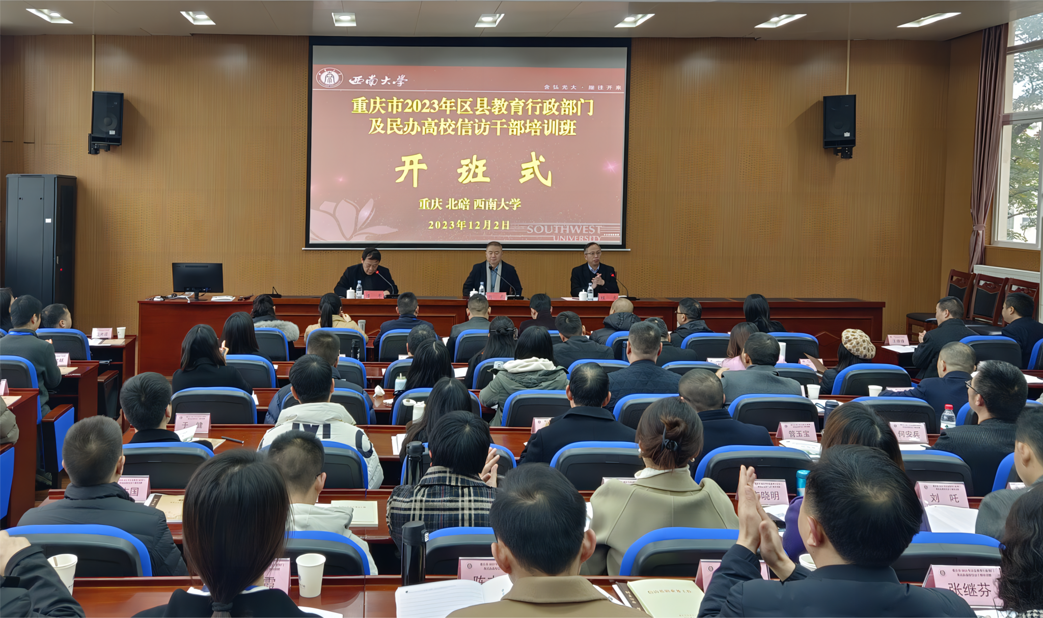 12月2日,重庆市2023年区县教育行政部门及民办高校信访干部培训班在我校顺利开班。重庆市教委安稳办主任肖东,继续教育学院院长程龙出席开班仪式,开班仪式由继续教育学院高校师资培训办公室项目总监谭军主持。