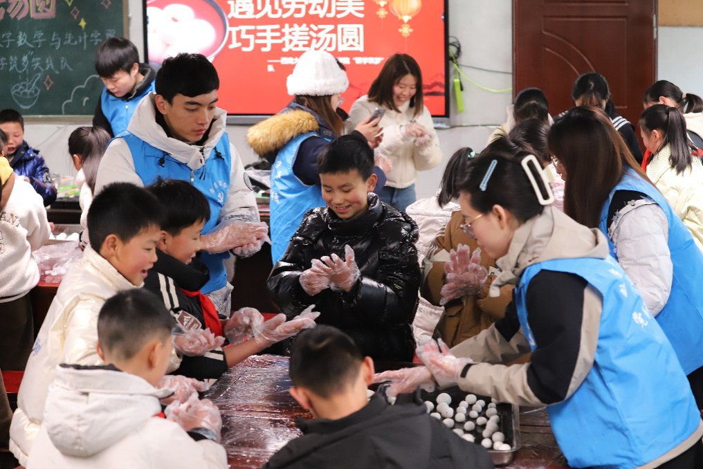 2月23日,元宵佳节将至,Beat365中文官方网站数学与统计学院“研学筑梦”实践队在城口县咸宜镇咸宜小学为孩子们举办了一场特别的庆祝活动。本次活动以“遇见劳动美 巧手搓汤圆”为主题,带领30余名小学生手搓汤圆,以劳动实践的形式让孩子们感受传统文化的魅力,体验劳动的意义与快乐。