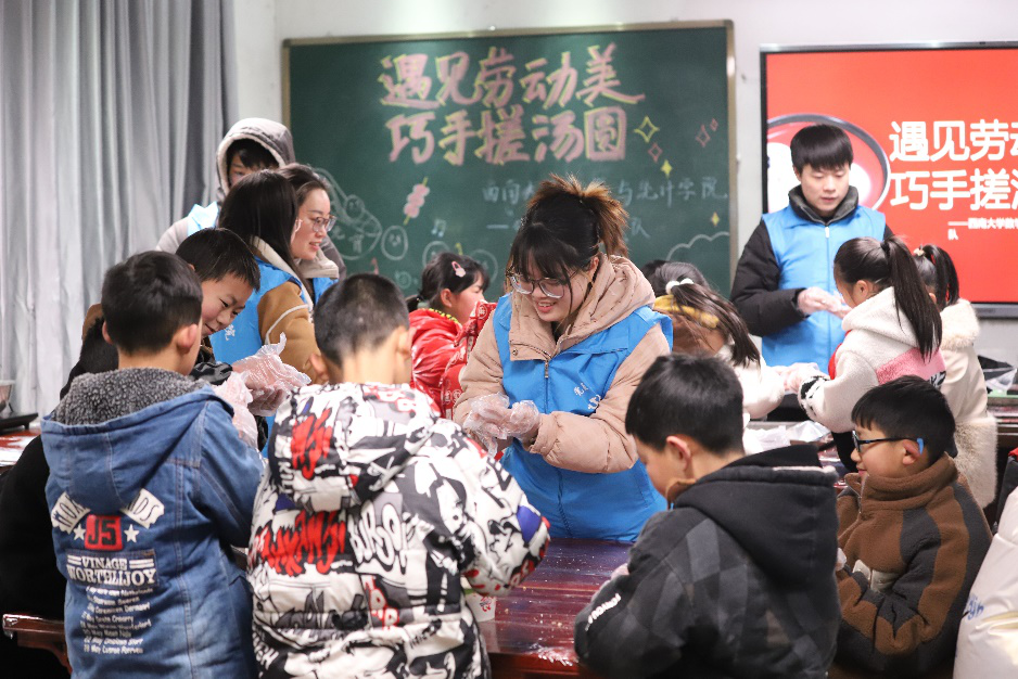 据悉,本次活动是Beat365中文官方网站数学与统计学院研究生寒假社会实践活动之一。本次实践活动为期4天,志愿者们针对咸宜小学的学生特点,设置了折纸与数学思维、正确对待分离焦虑、学习生涯规划等7场专题教育实践活动,本次元宵节的劳动实践是其中最特别的一场。“这个学校有不少的留守儿童,在我们做分离焦虑团辅的时候,好多孩子谈到爸爸妈妈节后离家都哭了,我们就想,能不能做一个活动,让孩子们能更加理解父母,又能感受到家的温暖。”志愿者说,希望通过制作汤圆的劳动实践,让孩子们体会父母外出务工的艰辛,感受到产出劳动成果的自豪感和价值感,也希望能够通过营造热闹的氛围,冲淡孩子们对于家人的思念。