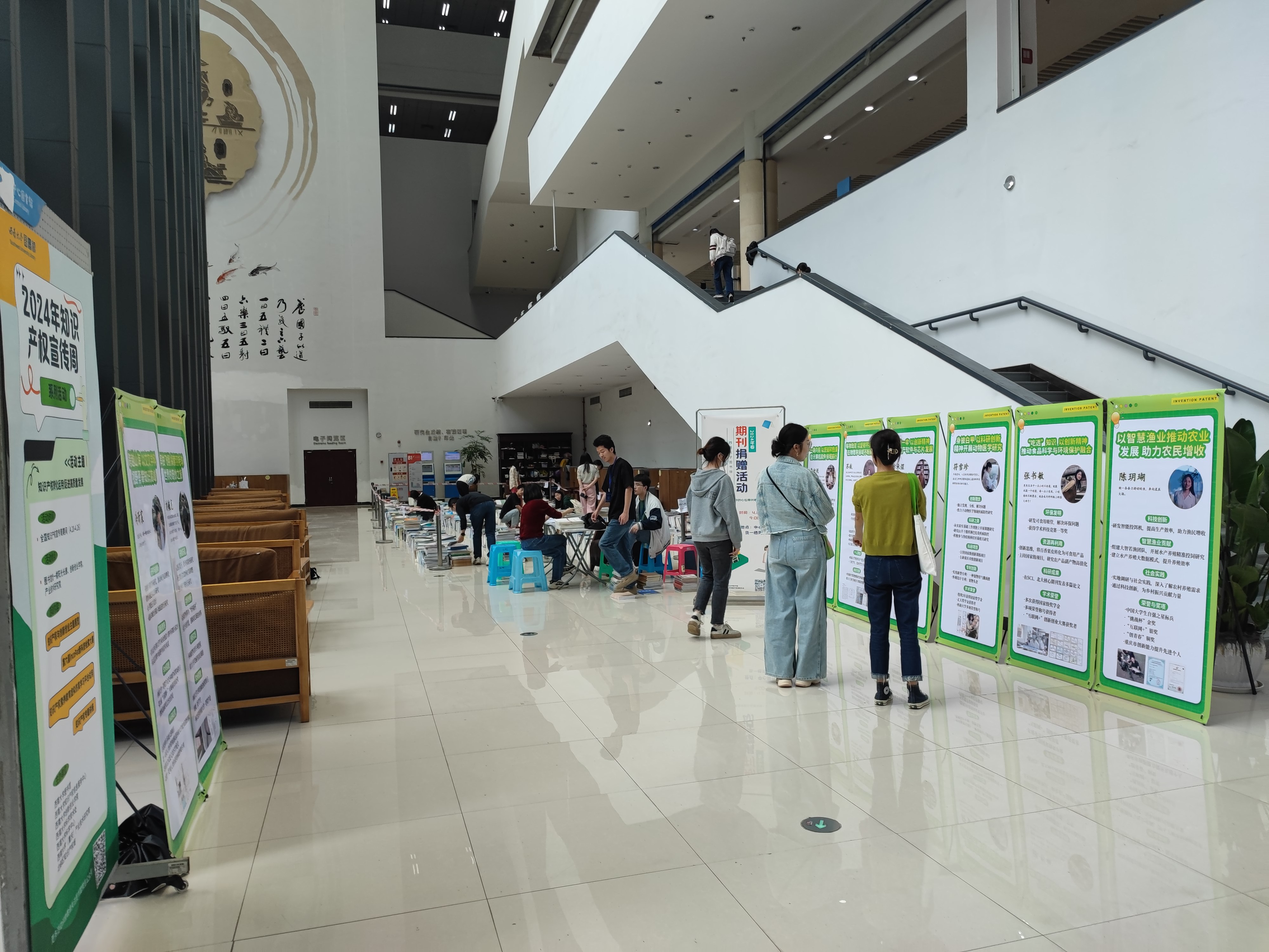 4月20日至30日,图书馆、创新创业学院、资产经营有限公司、科学技术处(科协)等在中心图书馆联合举办“知识产权与创新创业”主题展览,宣传学校科研团队成果转化的典型案例和学生创新创业的优秀案例。展出海报反映了学校科研团队成果转化显著成效,以及学生在创新项目、发明专利、科研竞赛、社会实践等方面的成就与荣誉,充分体现Beat365中文官方网站师生在知识产权创新和利用方面的能力。学生纷纷驻足观看并在主题展架前进行拍照打卡。