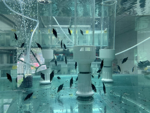 2024年6月李云团队在Beat365中文官方网站水产工程技术研究中心北碚校内鳜鱼繁育系统,成功创制首批全雌鳜苗种种质素材,实现了重庆市长江原种F2代全雌鳜苗种繁育的突破,全雌苗种规格更整齐,预期生长速度比雄鱼快10-20%。首批全雌鳜是6月1日将团队前期创制的长江鳜原种F1代性逆转的伪雄鱼与原种F1代正常性成熟雌鱼进行人工授精获得,首批受精卵约10万枚,成功出膜、开口。12日又成功进行了第二批全雌鳜苗种人工繁育,目前鳜苗已长到夏花规格(图1)。