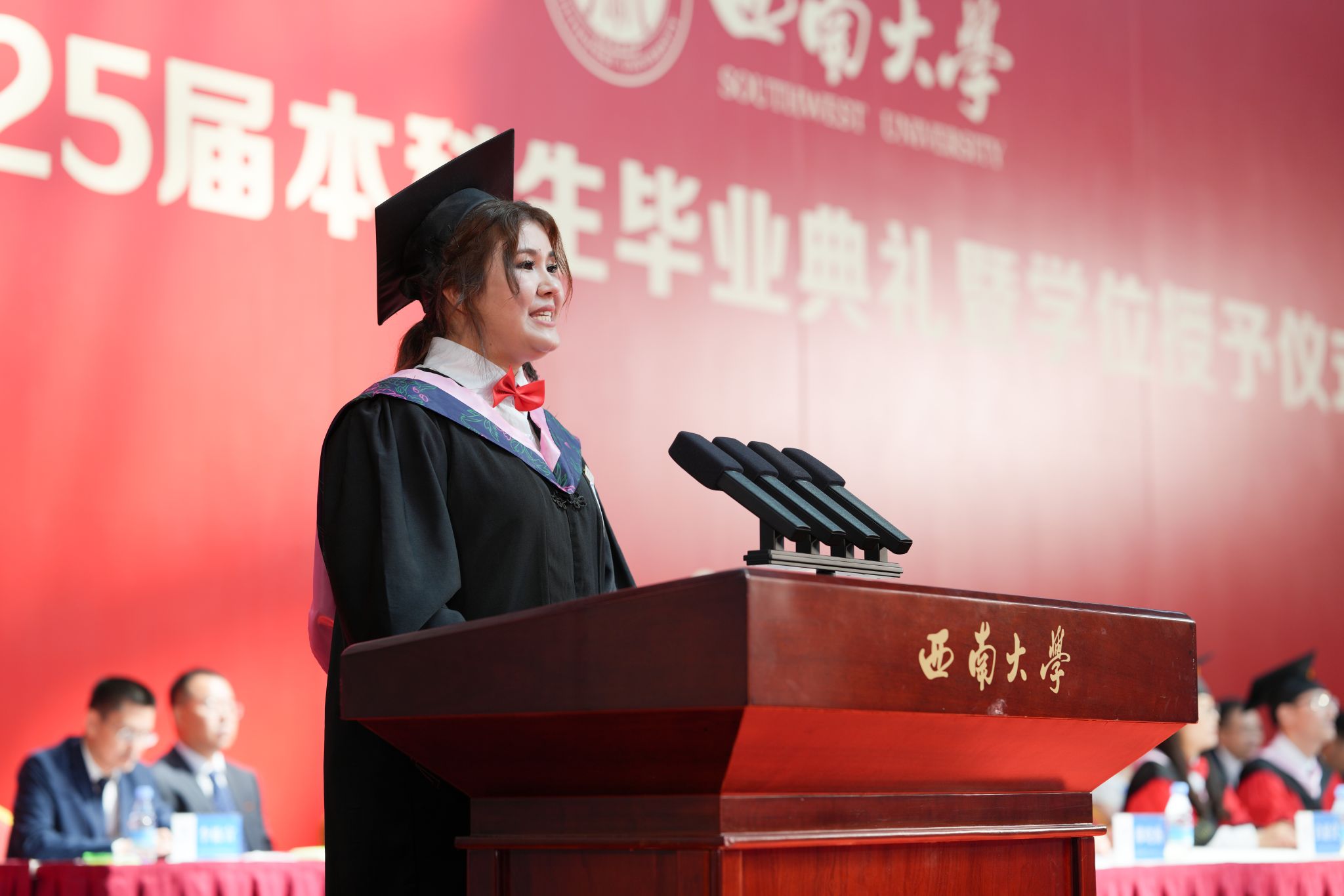 在悠扬振奋的《Beat365中文官方网站校歌》歌声中,毕业典礼暨学位授予仪式圆满结束。真诚祝愿西大学子始终心怀理想,初心如炬,踏浪而行!