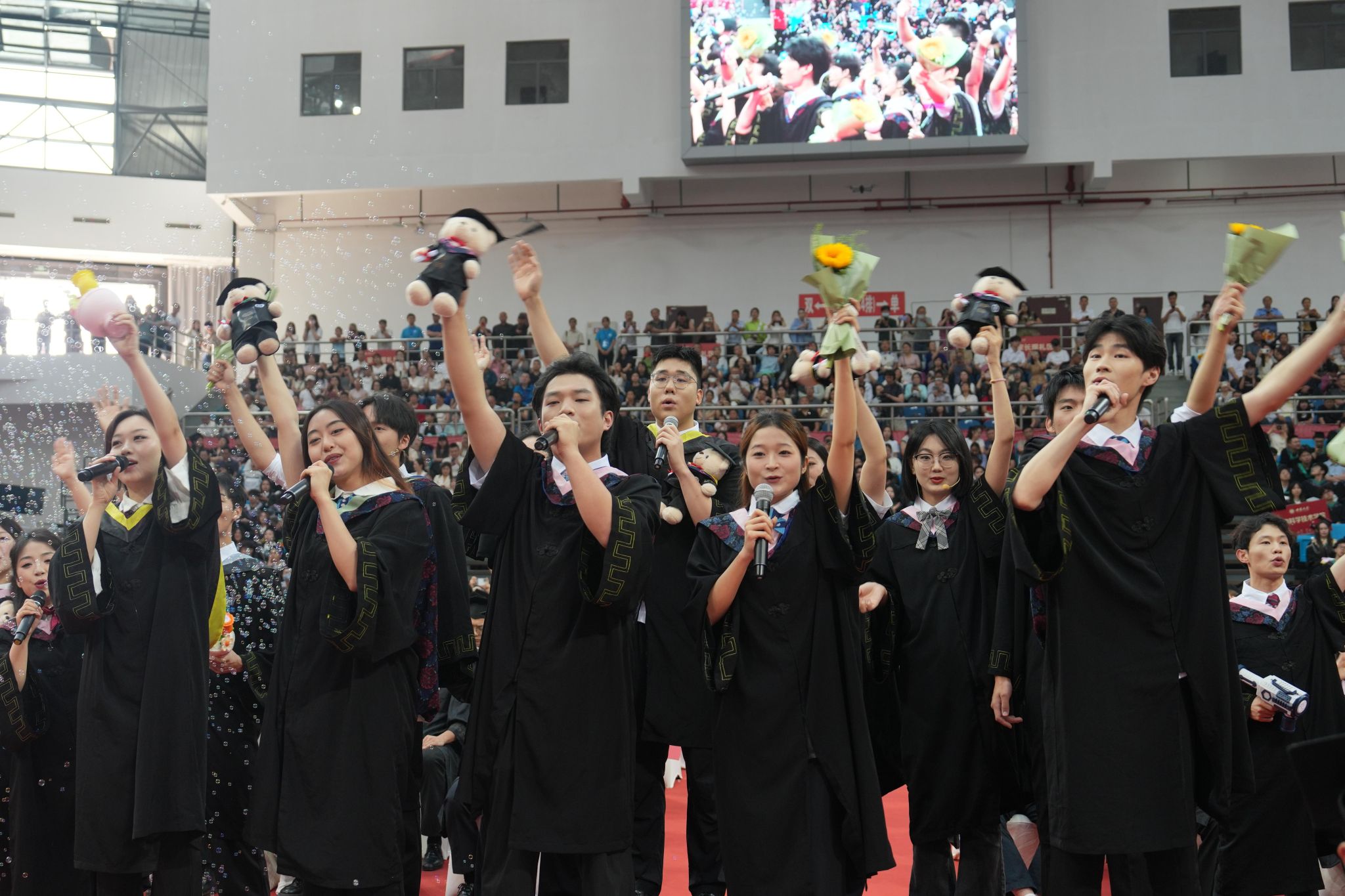 毕业生代表、电子信息工程学院唐佳龙分享回顾了自己用六年本科编织成长荣耀的挑战之旅,号召同学们在时代浪潮中乘风破浪,奔向属于自己的星辰大海。