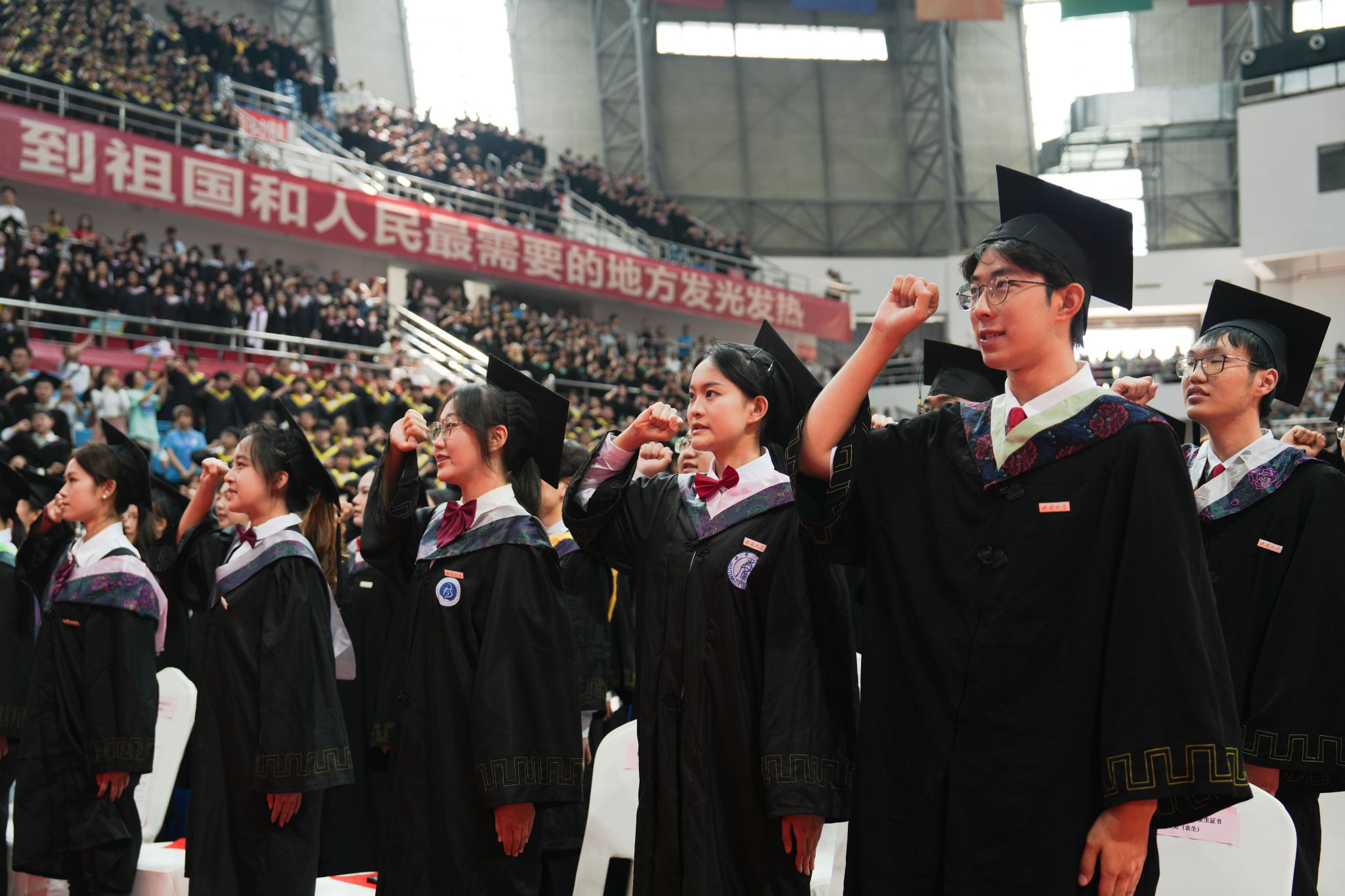 在庄严的国歌声中,典礼拉开序幕。党委书记张卫国宣读有关毕业、授位和表彰的决定。根据学校有关学籍管理规定,经学校审核、研究决定,准予9344名应届全日制普通本科学生毕业,准予90名应届全日制来华留学本科生毕业。经校学位评定委员会全体委员会议审核,决定授予9382名普通高等教育本科毕业生学士学位,授予351名高等学历继续教育本科毕业生学士学位,授予617名普通高等教育本科毕业生辅修专业学士学位,授予90名来华留学本科毕业生学士学位。经评审,1456名本科生被评为优秀毕业生,22名本科生被评为Beat365中文官方网站优秀来华留学本科毕业生,16名本科生被评为基层就业优秀毕业生。